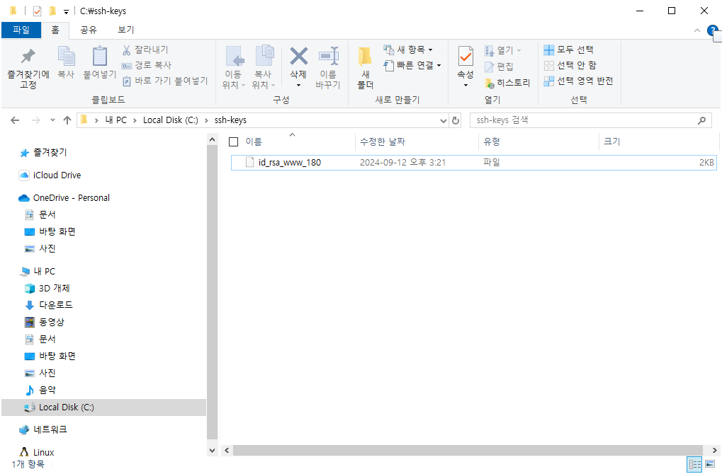 해당 예제에서는 id_rsa_www_180 으로 rename해서 사용하겠다.
