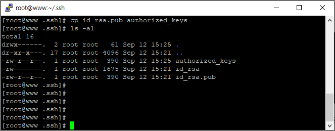 참고로 id_rsa.pub 파일은 해당 파일 이름 그대로 사용할 수는 없고, authorized_keys 라는 파일명으로 변경되어야 한다.